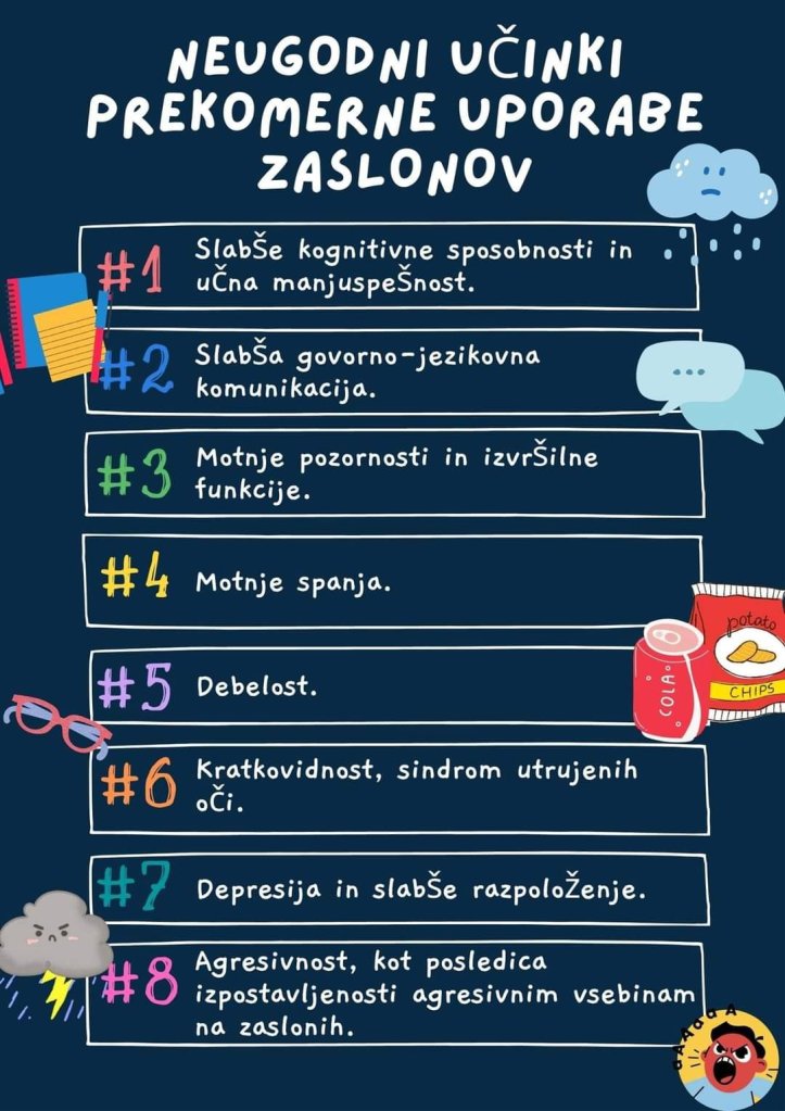 Mi smo doma na ta način že drastično znižali čas za ekrani. Moje pupe skoraj ekranov ne vidijo čez teden, sin pa se strogo drži tiste 1,5 ure igranja igric na daljavo z najboljšim prijateljem. To je njegov najboljši nadomestek popoldanskega druženja glede na trenutne razmere.