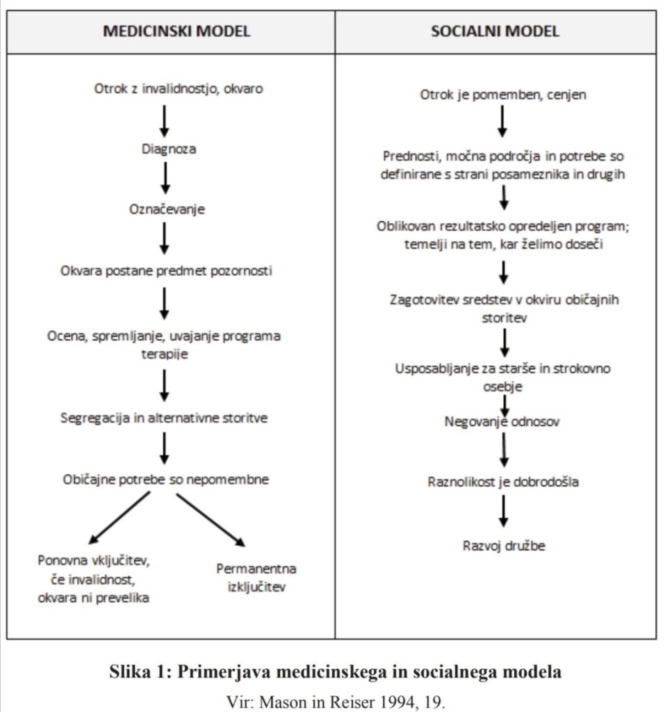 Pri nas sta namreč trdno zasidrana dva druga modela, tj. medicinski model in socialni model.