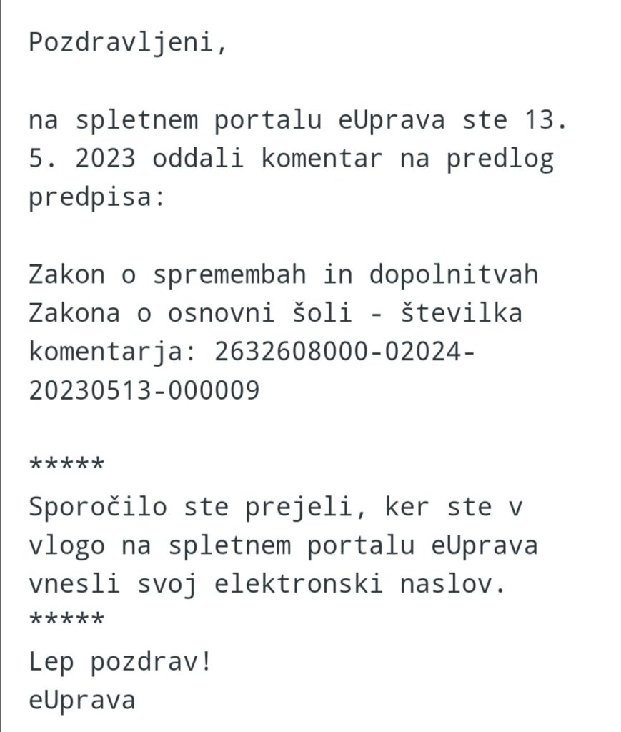 Predlagam, da oddamo komentarje v čimvečjem številu in se kot strokovnjaki in kot starši upremo nedorečenosti zakona, ki nas lahko še bolj omeji in naše otroke še globlje pahne v sistem storilnosti, duševnih stisk in nekonformnosti.
